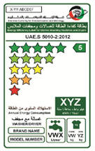 ESMA于2011年4月13日頒布實施國家能源效率和保護計劃(EESL)。依據(jù)該計劃,ESMA自2011年開始,先后將空調(diào)、洗衣機、冰箱納入EESL的管控范圍。所有在管控范圍內(nèi)的產(chǎn)品,都必須通過產(chǎn)品測試以獲取能效證書,并加貼能效標簽(如左圖),方可進入阿聯(lián)酋市場。