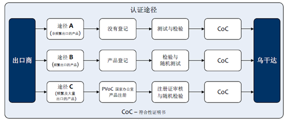 4.該P(yáng)VoC符合性認(rèn)證計(jì)劃提供三種認(rèn)證途徑,出口商可以根據(jù)其類型和發(fā)貨頻率選擇出口管制產(chǎn)品到烏干達(dá)的認(rèn)證方式。