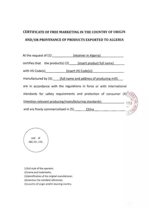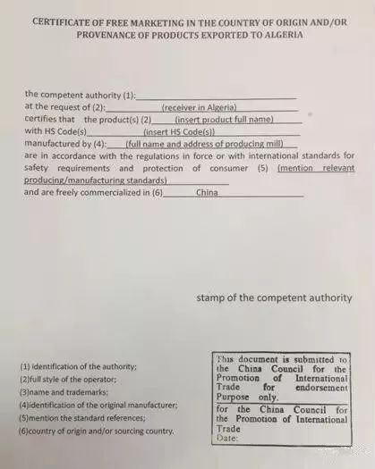 出口產(chǎn)品不在這851項(xiàng)之列的小伙伴也不要大意,阿爾及利亞商務(wù)部出臺(tái)新規(guī),對(duì)我國(guó)出口至阿的貨物要求提供原產(chǎn)國(guó)有權(quán)機(jī)構(gòu)蓋章的“自由市場(chǎng)證書(shū)”(The certificate of free marketing in the country of origin),在阿方銀行備案后方可獲得其為我企業(yè)開(kāi)具的信用證。