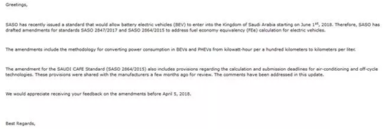 若對法規(guī)存在疑問或意見,廠家可以在2018年4月5日前,將問題反饋SASO。通知原文: