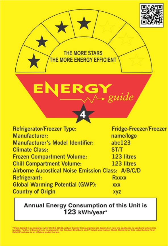 在新法規(guī)中加納要求電器制造商和進口商必須持有必要的技術資料,例如:說明書、符合能效標準的檢測報告、技術信息表等提交能效注冊,在獲得加納委員會的授權后方能進入加納市場。當制造商或進口商完成能效注冊后將獲得加納授予的唯一產品識別碼,該識別碼將直接體現在能效標簽上。注冊后的能效標簽示例如下: