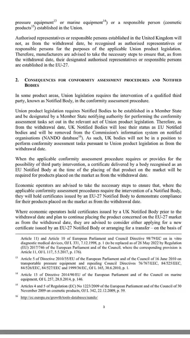 通告明確說明了,在2019年3月30日之后,所有英國的公告機構將失去公告機構的資質(zhì)。