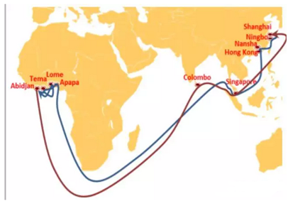 中遠去往西非途徑尼日利亞的航線:WAX2