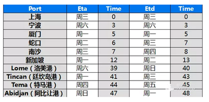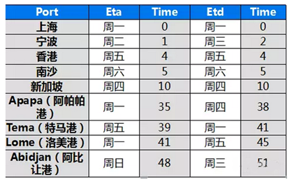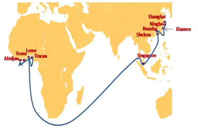 中遠去往西非途徑尼日利亞的航線:FWAS
