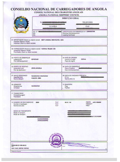 根據(jù)安哥拉的法規(guī),每票B/L運(yùn)至安哥拉(Angola)的貨物,都必須在裝貨港提供C.N.C.A.出具的船運(yùn)證書(shū)。安哥拉(Angola)CNCA船運(yùn)證書(shū)是CONSELHO NACIONAL DE CARREGADORES DE ANGOLA的縮寫(xiě)。